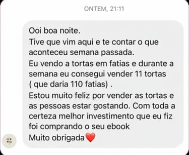 Não, você não precisa ter experiência! Você vai aprender desde o básico, como fazer as tortas, até dicas para vender e lucrar, mesmo que nunca tenha feito isso antes.